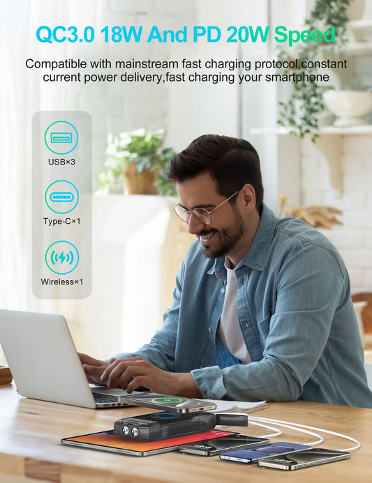 Portable Charger, Solar Power Bank 33500mAh Fast Charging, Solar Battery Pack with Waterproof 6W Bright Flashlight for iPhone Samsung Tablet